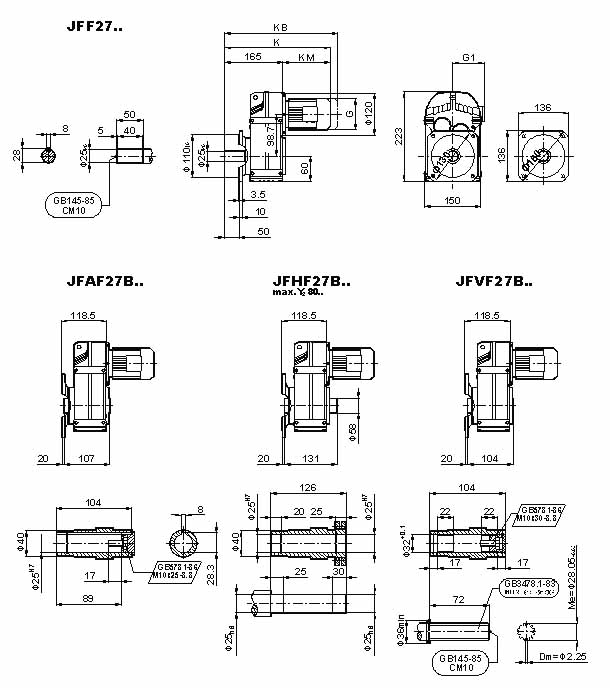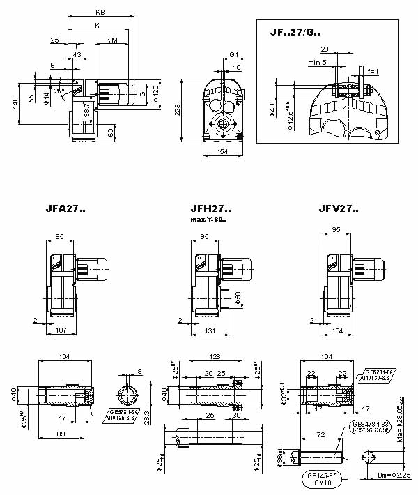 | 當前位置:減速機首頁 >> 產品大全 >> 減速電機 >> JF系列減速電機(GB10095-88) >> JF系列減速機外形安裝尺寸(JF27、JFA27B、JFH27B、JFV27B、JFF27、JFAF27B、JFHF27B、JFVF27B、JF..27/G、JFA27、JFH27、JFV27、JFAZ27、JFHZ27、JFVZ27)(GB10095-88) |