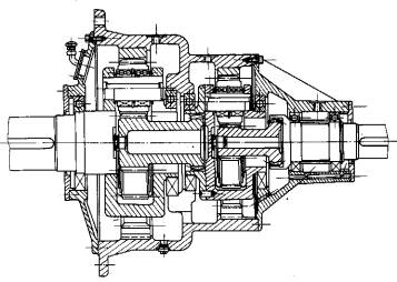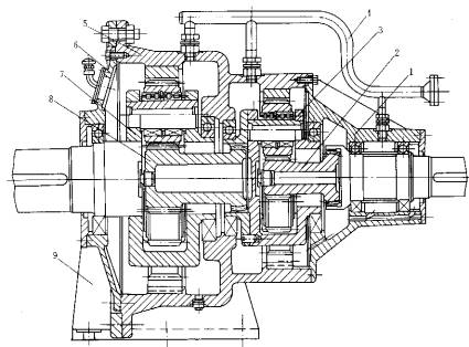 1—輸入軸 2—太陽輪 3—輸入行星架 4—潤滑管路 5—機(jī)體 6—后機(jī)蓋 7—輸出行星架