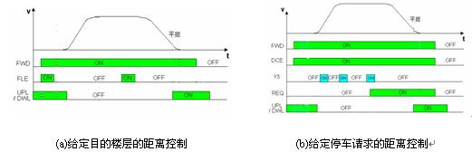 TD3100是我司在高性能矢量變頻器TD3000基礎(chǔ)上開(kāi)發(fā)的電梯專用變頻器,深受電梯廠家的青睞。其中的距離控制功能,實(shí)現(xiàn)了樓層距離自學(xué)習(xí)、直接高精度?抗δ埽脩魺o(wú)需進(jìn)行減速點(diǎn)的計(jì)算,簡(jiǎn)化了用戶的軟件設(shè)計(jì)工作量,在電梯和立體倉(cāng)庫(kù)方面得到了廣泛的應(yīng)用。變頻器將各個(gè)樓層的高度信息通過(guò)編碼器學(xué)習(xí)記憶在存儲(chǔ)器中,在運(yùn)行過(guò)程中,如果是給定樓層距離控制,變頻器會(huì)自動(dòng)計(jì)算減速點(diǎn)減速停車。目的樓層信息通過(guò)樓層使能端子FLE有效時(shí),從F1~F6端子獲取。如果是給定REQ請(qǐng)求信號(hào)的距離控制,變頻器會(huì)自動(dòng)計(jì)算每層的減速點(diǎn),可以通過(guò)Y1~Y4可編程輸出端子,提前輸出給控制器,控制器在接收到每層的減速信號(hào)后,如果需要停車,就給出停車請(qǐng)求信號(hào)REQ給變頻器,變頻器就按照減速曲線正常減速停車。兩種距離控制的時(shí)序如圖1所示。