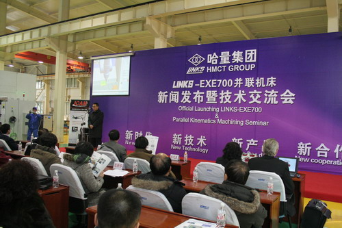 據(jù)哈量集團董事長魏華亮介紹,這款新一代LINKS-EXE700并聯(lián)機床是哈量集團引進瑞典愛克斯康(EXECHON)公司并聯(lián)機床技術(shù),通過消化吸收及再創(chuàng)新而設(shè)計制造的具有國際領(lǐng)先水平的產(chǎn)品。這種機床具有剛性高、動態(tài)及高速性能好、加工范圍大等特點,一次裝夾即可實現(xiàn)5到6面及全部復合角度的位置加工,特別適用于敏捷加工或復雜異型件及復合角度孔和曲面的加工等。