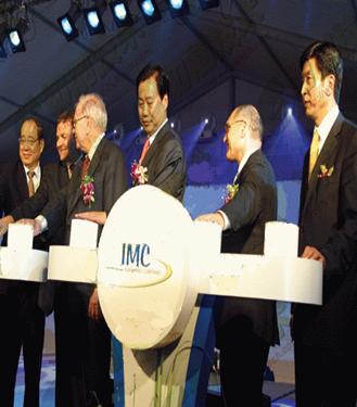 巴菲特同IMC集團及大連市領(lǐng)導為IMC大連新工廠開業(yè)慶典啟動按鈕 |