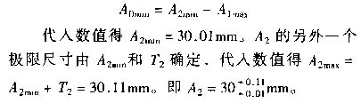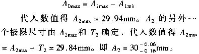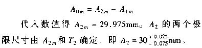 當以M為修配面時,修配后A2變小,從而Ao也變小,對于一個偏大的A2值,可以通過修配使之變小。但A2過大則修配量大。由于一個偏小的A2值,無法通過修配M面來保證修配精度。因此,為了保證足夠的但又是最小的修配量,對修配使封閉環(huán)變小的場合,應該令修配前、后環(huán)的最小尺寸相等,并由此解出修配環(huán)的一個極限尺寸: