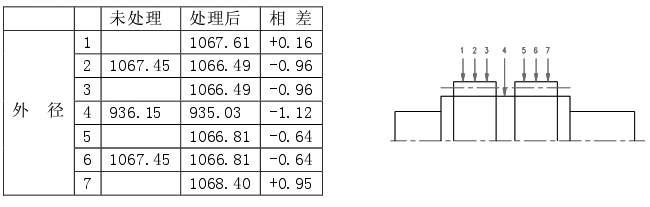 2.2 大型齒輪軸變形規(guī)律:齒頂圓外徑呈明顯收縮趨勢(shì),但一根齒軸的齒寬方向上,中間呈縮小,兩