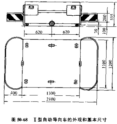 目前應(yīng)用較多的是Ⅱ型自動導(dǎo)向車圖50-68所示是這種小車的外觀和基本尺寸。