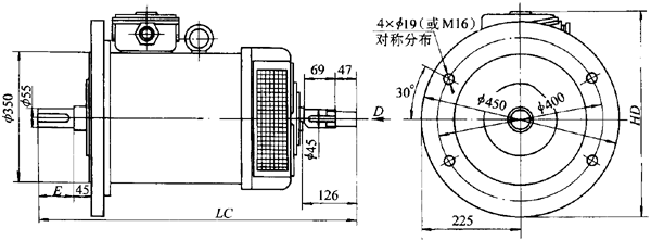 圖4   YTDP系列335型臥式,凸緣安裝型式(IM3002)(見(jiàn)表2)