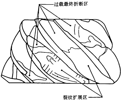 最終斷口面形貌可與過載折斷引起的一種或其他斷口面相對應(yīng)。