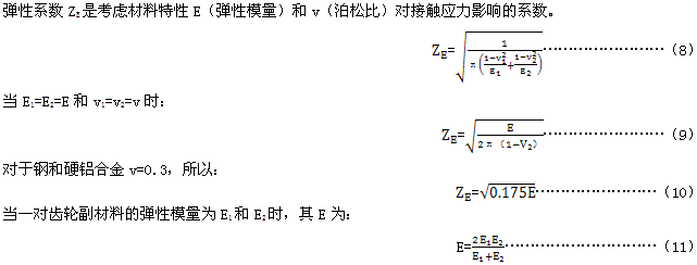 >>錐齒輪承載能力計算方法第 2 部分:齒面接觸疲勞(點蝕)強度計算彈性系數(shù)ZE(GB/T10062.2-2003)