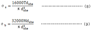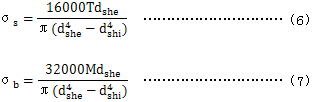 軸的名義應(yīng)力按以下公式計算。公式(6)與公式(7)可應(yīng)用于薄壁軸的設(shè)計,這里比值dshi/dshe<0.9是不允許的。