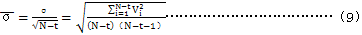 c.該列數(shù)據(jù)的標準偏差按式(7)計算: