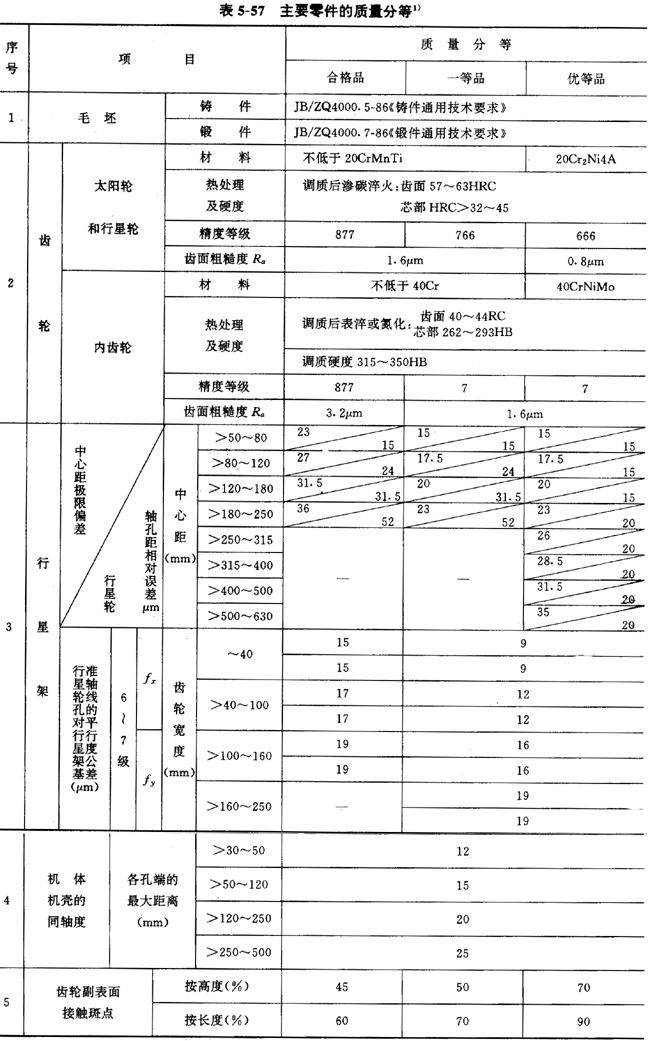 標(biāo)準(zhǔn)規(guī)定的行星齒輪減速器分為合格品、一等品和優(yōu)等品三個等級。符合JB1799-76和JB/Z291-87中2.1條規(guī)定的為合格品;符合JB3722~3724-84和JB/Z291-87中2.2條規(guī)定的為一等品;符合JB/Z291-87中2.3條規(guī)定的為優(yōu)等品。
