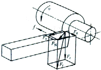 Fz——切削力或切向力。它切于過渡表面并與基面垂直。Fz是計(jì)算車刀強(qiáng)度,設(shè)計(jì)機(jī)床零件,確定機(jī)床功率所必需的。