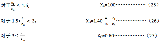 嚙入系數(shù)XQ考慮了在高滑動區(qū)域,在正進(jìn)入嚙合處(在被驅(qū)動齒輪的齒頂處)的沖擊載荷。可用嚙入重合度εf與 與嚙合重合度εa之比的函數(shù)來表示,見圖3。