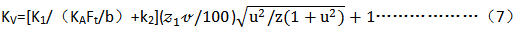 動(dòng)載系數(shù)KV是考慮大、小齒輪嚙合振動(dòng)產(chǎn)生的內(nèi)部附加動(dòng)載荷影響的系數(shù),其值可由下式計(jì)算:
