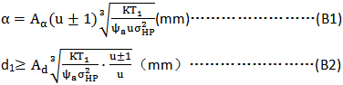 齒寬系數(shù)ψa見表B3ψd=ψa(u±1)/2。