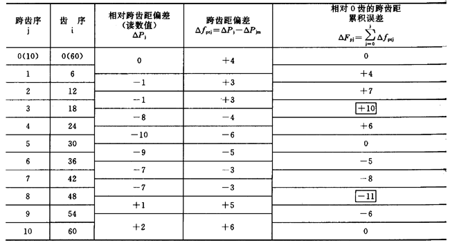 表3跨齒齒距累積誤差的數(shù)據(jù)處理