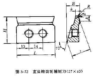 表3-145 直齒錐齒輪精刨刀(27×40)基本尺寸