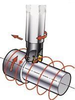 切削速度由刀具的旋轉(zhuǎn)來(lái)提供,進(jìn)給則通過(guò)工件的旋轉(zhuǎn)與刀具的線性進(jìn)給相結(jié)合來(lái)進(jìn)行。因此,只有在工件能夠旋轉(zhuǎn)的情況下才適合車(chē)銑。