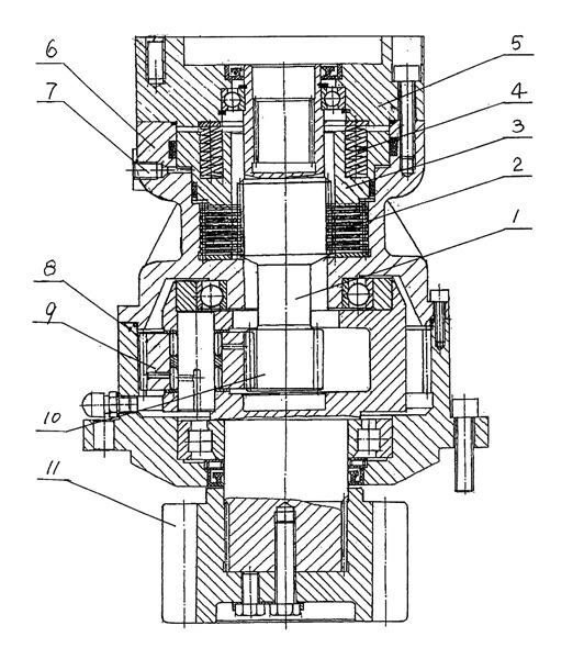 | 一種回轉(zhuǎn)減速機(jī),在殼體內(nèi)有常閉摩擦制動(dòng)機(jī)構(gòu)和行星減速機(jī)構(gòu),殼體包括馬達(dá)座、油缸體、摩擦片座、行星輪架軸承座和內(nèi)齒殼體座等部分,其特征是其中油缸體、摩擦片座和行星輪架軸承座三部分為一件零件。 |
