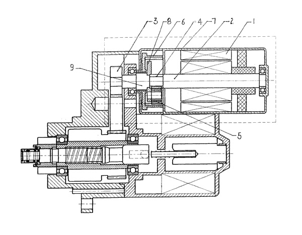 | 一種電機(jī)減速機(jī),主要解決電機(jī)主軸傳遞到起動(dòng)機(jī)的扭矩的問(wèn)題,包括與起動(dòng)電機(jī)、減速機(jī)構(gòu)及單向器,起動(dòng)電機(jī)的輸出齒輪通過(guò)減速機(jī)構(gòu)與單向器的輸入齒輪聯(lián)接,其特征在于:所述的起動(dòng)電機(jī)的主軸上設(shè)有中心齒輪,該中心齒輪與多個(gè)星型齒輪、大齒圈組成行星輪機(jī)構(gòu),大齒圈與電機(jī)殼體固定在一起,星型齒輪支架安裝在傳動(dòng)軸的一端,該傳動(dòng)軸的另一端安裝電機(jī)輸出齒輪。該種電機(jī)減速機(jī)使用效果理想,具有減速增扭功能,而且結(jié)構(gòu)簡(jiǎn)單,制作容易。 |
