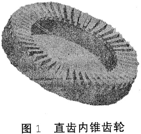 近幾年來,隨著科學(xué)技術(shù)的高速發(fā)展,人們又研制出了一種很有發(fā)展前途的減速傳動裝置——章動齒輪傳動系統(tǒng),與傳統(tǒng)的齒輪減速裝置相比,該傳動系統(tǒng)不僅能實現(xiàn)大傳動比傳動,而且具有傳動平穩(wěn)、結(jié)構(gòu)緊湊、承載能力強、壽命長等優(yōu)點,因此受到各個行業(yè)及科研單位的廣泛關(guān)注。但是由于其關(guān)鍵部件內(nèi)錐齒輪(如圖1所示)加工制造困難,在很大程度上制約了該傳動系統(tǒng)的廣泛應(yīng)用。雖然使用的刀具價格非常昂貴,而且裝夾困難。下面提出了利用直齒錐齒輪刨齒機和萬能銑床加工內(nèi)錐齒輪的方法。