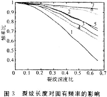 本文從齒輪動(dòng)力學(xué)角度出發(fā),研究了裂紋深度對(duì)齒輪固有頻率的影響,結(jié)果表明,可以將固有頻率作為齒輪裂紋故障的一個(gè)診斷指標(biāo)。同時(shí),通過(guò)文獻(xiàn)可以知道,齒輪的異常振動(dòng)會(huì)激起齒輪本身的固有頻率。因此,如果能夠精確計(jì)算出正常和裂紋齒輪的固有頻率值,并且能夠在齒輪工作的條件下將其提取出來(lái),對(duì)于齒輪的故障診斷工作將有重要的實(shí)際意義。