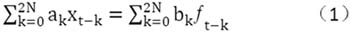 式(1)表示響應(yīng)數(shù)據(jù)序列Xt與歷史值Xt-k,的關(guān)系,其中等式左邊為自回歸(AR)模型,右邊為滑動(dòng)均值(MA)模型,2N為自回歸和滑動(dòng)均值模型的階次,ak、bk分別表示待識(shí)別的自回歸系數(shù)和滑動(dòng)均值系數(shù),ft-k為白噪聲激勵(lì)。