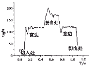 圖4 薄壁(腹板)加工示意圖 例如在對一個帶有腹板的矩形框體件加工中,銑刀從試件中間位置傾斜下刀,在深度方向銑到最終尺寸,然后一次走刀由中間向四周螺旋擴(kuò)展至側(cè)壁。實(shí)驗(yàn)研究表明,該方法較為有效的降低了切削變形及其影響,降低了由于剛性降低而能發(fā)生的切削振動的可能,零件的質(zhì)量和加工效率也有了顯著提高。 對于腹板的銑削加工,文獻(xiàn)中介紹的工藝方法也值得參考。其具體方法如下:①刀具軌跡避免重復(fù),以免刀具碰傷暫時變形的切削面;②粗加工分層銑削,讓應(yīng)力均勻釋放;③采用往復(fù)斜下刀方式以減少垂直分力對腹板的壓力;④保證刀具處于良好的切削狀態(tài)。當(dāng)然,該方法僅在走刀路徑方面進(jìn)行優(yōu)化,還需結(jié)合其它方法(如使用真空夾具等)進(jìn)一步控制加工變形。 3 圓角加工的刀具路徑優(yōu)化方案 常規(guī)NC加工在制定刀具走刀路徑的時候,一般采用等切厚切削,即在一次走刀過程中徑向切深為一定值。但是,在圓角過度處,加工問題較大。在高速銑削加工薄壁結(jié)構(gòu)時, 問題尤為顯著。在我們的圓角切削力實(shí)驗(yàn)中,可以發(fā)現(xiàn)刀具在圓角處的切削力有顯著的突變(見圖5)。