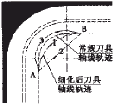 圖9 附加走刀路徑細(xì)化示意圖 采用圓角處刀具路徑細(xì)化方案,可以有效的保持穩(wěn)定切削,減小因切削力突變而引起的加工變形和可能發(fā)生的切削振動,提高了零件的加工質(zhì)量。 當(dāng)然,在圓角切削力實(shí)驗(yàn)中,我們還發(fā)現(xiàn),逆銑時切屑厚度是由薄到厚,由于刃口尺寸效應(yīng),在刀刃剛接觸工件時,后刀面與工件之間的摩擦較大,易于引起振動,拐角處會出現(xiàn)嚴(yán)重的斜向振紋。順銑則剛好相反,雖然順銑的切削力稍大于逆銑時的切削力,但是在切削拐角處時,不會產(chǎn)生明顯的振紋。不過順銑時切屑厚度是由厚到薄,對工件和刀具的沖擊力較大,在加工時盡可能減少刀具的懸伸長度和增加工件的剛性。 4 其它高效銑削加工技術(shù) 進(jìn)給量的局部優(yōu)化法與刀具偏擺數(shù)控補(bǔ)償技術(shù)作為數(shù)控加工前期的工藝優(yōu)化和質(zhì)量保證研究,分別從抑制加工變形和有效補(bǔ)償加工變形的思想出發(fā),二者均應(yīng)用了有限元技術(shù)來建立零件的加工變形模型,并分析處理加工過程中的加工變形狀況。 進(jìn)給量的局部優(yōu)化方法是針對恒定進(jìn)給量提出的。因?yàn)榱慵骋槐砻嫔细鞑糠值膭傂约扒邢髁Φ拇蟆 ⌒〔煌? 受力變形情況也不一樣。利用有限元分析軟件進(jìn)行分析后得到變形分布圖, 可以看到有些位置的變形大, 有些位置的變形小。如果采用恒定的進(jìn)給量, 為了保證變形量最大的位置能達(dá)到質(zhì)量要求,整個表面就得全部采用很小的進(jìn)給量, 而進(jìn)給量的局部優(yōu)化就是在變形小的地方采用大進(jìn)給量,而在變形大的地方采用小的進(jìn)給量。這樣可以在保證變形量的同時, 提高效率, 減少成本。實(shí)驗(yàn)研究表明, 采用該方法在提高加工質(zhì)量的同時可以節(jié)省約60%的加工時間。 刀具偏擺數(shù)控補(bǔ)償技術(shù),是在有限元分析基礎(chǔ)上, 根據(jù)模擬仿真加工變形的大小,在數(shù)控編程時讓刀具在原有走刀軌跡中按變形情況附加補(bǔ)償運(yùn)動,補(bǔ)償因切削力作用而產(chǎn)生的變形。對側(cè)壁加工,通過偏擺刀具進(jìn)行補(bǔ)償;對腹板加工,則補(bǔ)償軸向切深。通過數(shù)控補(bǔ)償, 可以將因變形而產(chǎn)生的殘余材料切除, 一次走刀即可保證薄壁件側(cè)壁或腹板精度,從而達(dá)到高效、經(jīng)濟(jì)、優(yōu)質(zhì)加工薄壁零件的目的。 5 結(jié)論 以上介紹和分析了當(dāng)今國內(nèi)外有關(guān)薄壁結(jié)構(gòu)的高效銑削加工技術(shù)研究狀況。目前,國內(nèi)外對于薄壁結(jié)構(gòu)的加工變形研究主要在靜態(tài)分析方面,而對于薄壁結(jié)構(gòu)的加工變形研究的動態(tài)分析還不成熟。當(dāng)然,對于薄壁結(jié)構(gòu)的高效銑削加工技術(shù)研究,可以從機(jī)床、夾具、刀具、工件以及切削參數(shù)與走刀路徑等不同方面進(jìn)行優(yōu)化分析。 隨著高速切削技術(shù)與有限元技術(shù)的進(jìn)一步發(fā)展與完善,數(shù)控加工前期的工藝優(yōu)化和質(zhì)量保證研究工作日顯突出。利用理論分析和實(shí)驗(yàn)相結(jié)合建立工件變形模型;通過模擬分析替代大量的實(shí)驗(yàn)研究工作來優(yōu)化切削參數(shù)與走刀路徑;根據(jù)批量生產(chǎn)的實(shí)際需要研究、開發(fā)新型刀具、夾具,努力提高機(jī)床的性能。薄壁結(jié)構(gòu)的高效銑削加工技術(shù)定會得到較大的發(fā)展,薄壁結(jié)構(gòu)的應(yīng)用會更加廣泛。