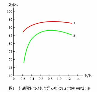 該電機(jī)不需要無(wú)功勵(lì)磁電流,可顯著提高功率因數(shù)(可高達(dá)1),并減少了定子電流和定子電阻損耗。在電機(jī)穩(wěn)定工作時(shí),轉(zhuǎn)子和定子磁場(chǎng)同步運(yùn)行,轉(zhuǎn)子無(wú)感應(yīng)電流,也就不存在轉(zhuǎn)子電阻損耗,兩者使電動(dòng)機(jī)效率提高2%~8%,而且該電機(jī)負(fù)載率(P2/PN)在25%~120%范圍內(nèi)均可保持較高的效率和功率因數(shù),使輕載運(yùn)行時(shí)節(jié)能效果更顯著。