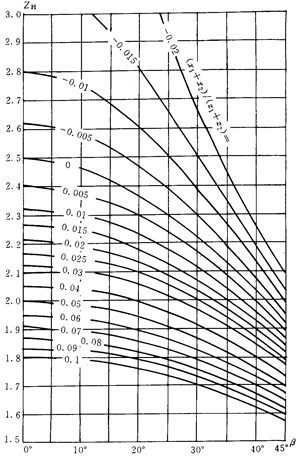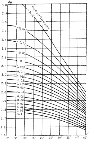 式中:zn1,zn2——小、大(斜)齒輪當(dāng)量齒數(shù)。對(duì)于內(nèi)嚙合齒輪,式中(150)中的,zn2應(yīng)取為無限大。