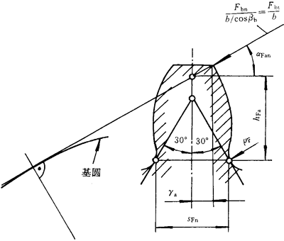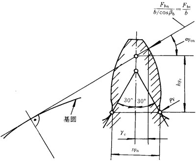 hFe——彎曲力臂。外齒輪由式(191)計(jì)算,內(nèi)齒輪由式(198)計(jì)算。