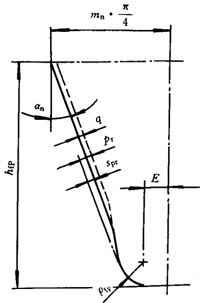 注:an=22.5°;hap/mn=1.0,hfp/mn=1.25;ρfp/mn=0.4