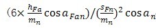 對(duì)內(nèi)齒輪:當(dāng)ρF=0.15mn,hfp=1.25mn,hap=mn時(shí),YSa=2.76