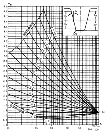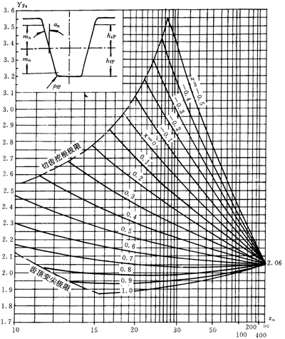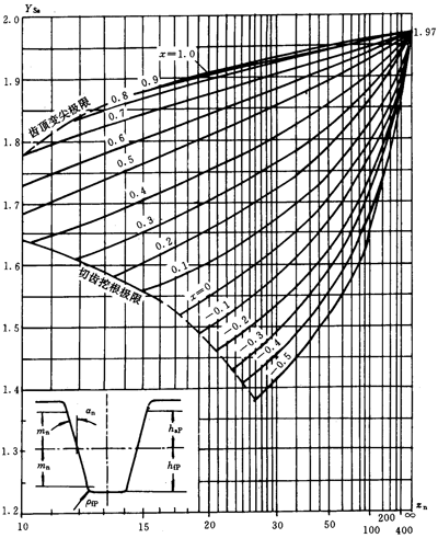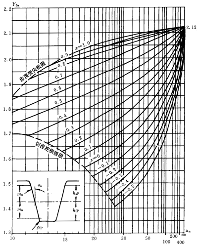 應(yīng)力修正系數(shù)Ys和Ysa是將名義彎曲應(yīng)力換算成齒根局部應(yīng)力的系數(shù)。它考慮了齒根過渡曲線處的應(yīng)力集中效應(yīng),以及彎曲應(yīng)力以外的其他應(yīng)力對(duì)齒根應(yīng)力的影響。