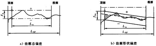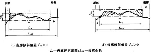 ——評定范圍內(nèi)齒廓傾斜偏差,mm;