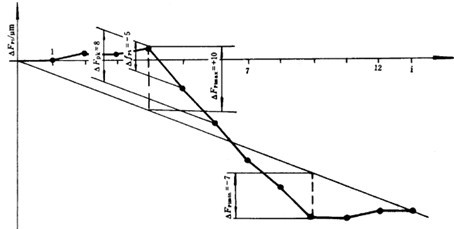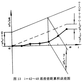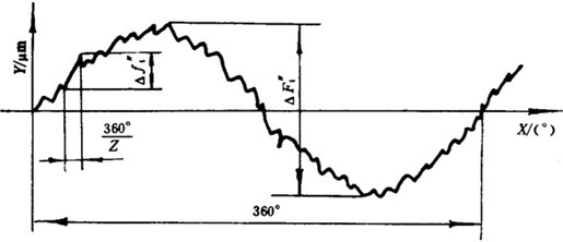 按16.1.2所述原理,測出截面整體誤差曲線或全齒寬整體誤差曲線,在該曲線上按誤差定義取出