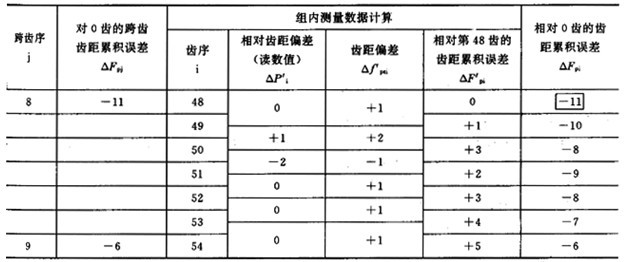 對(duì)被測齒輪進(jìn)行n次重復(fù)測量(n=5~10),n次測得值的最大差值即為儀器的示值變動(dòng)性。