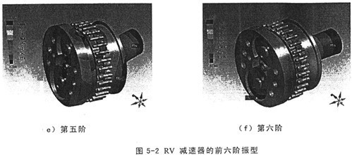 對上圖有限元模型進行模態(tài)計算時不必求出全部的固有頻率和振型,越是低價模態(tài),對振動影響越大,通常取前5~10階模態(tài),精度就已足夠。本課題在分析中求解了前11階模態(tài),這些模態(tài)的固頻率和振型情況見表5-1,圖5-2僅給出減速器的前6階固有振型,通過振型圖和各階振型的動畫顯示,可直觀地分析RV減速器的動態(tài)特性。