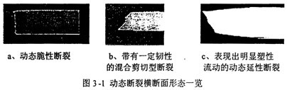 圖3-2顯示了DBF和DDF的形貌特征。從圖中看出動(dòng)態(tài)延性斷裂相比于脆性斷裂具有速度較低,裂紋擴(kuò)展途徑比較單一,能自行止裂等特點(diǎn)。由于脆性斷裂已被廣泛遏止,近二十年來(lái),人們把注意力主要集中在延性斷裂的起裂擴(kuò)展和止裂上,對(duì)延性斷裂的關(guān)注遠(yuǎn)超過(guò)對(duì)脆性斷裂的研究,目前還遠(yuǎn)未結(jié)束。管線鋼動(dòng)態(tài)斷裂韌性的測(cè)定也就成為了人們關(guān)注的焦點(diǎn)。