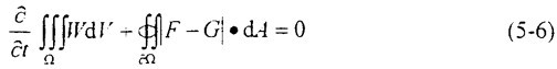 Ω是控制體邊界面,W是求解變量,F(xiàn)是無(wú)粘通量,G是粘性通量。