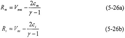 其中無(wú)反射邊界條件是根據(jù)特征線的方法來(lái)求出邊界上的參數(shù)值。根據(jù)一維完全氣體無(wú)粘非定常運(yùn)動(dòng)的方程組,在亞聲速的條件下由邊界上的入射波和出射波關(guān)系可以得到兩個(gè)Riemann不變量: