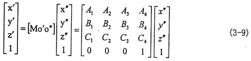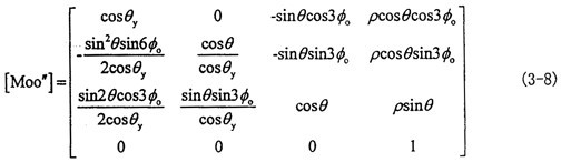 (3-7)式中A1、A2、A3、A4、B1、B2、B3、B4、C1、C2、C3、C4等于其在矩陣[Mo′o″]中對應(yīng)位置的表達式。