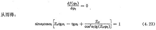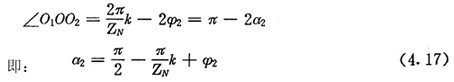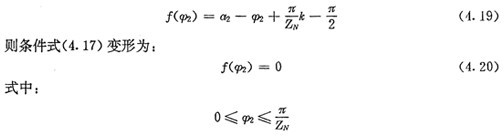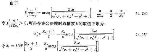 上式就是齒廓AB上與跨槽數(shù)為k的齒廓具有公法線的點的條件。當k確定后,若存在公法線,則由(4.17)式并結(jié)合基本關(guān)系式(2.38)等可解出