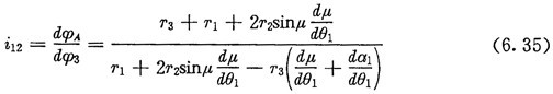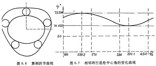 節(jié)曲線形狀如圖6.6所示。圖6.2為該輪系加上輪齒后的情形。按(6.34)式可算得相鄰兩行星輪之間的夾角隨