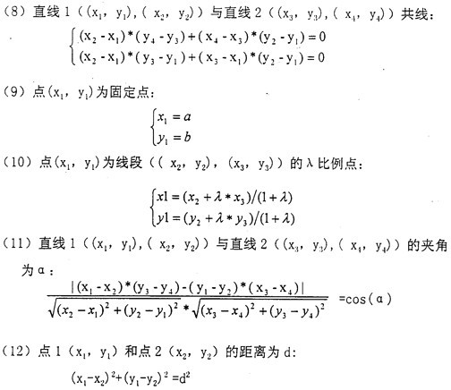 結(jié)構(gòu)約束有水平、鉛垂、共點(diǎn)、相切、平行、垂直、點(diǎn)在直線上,相切、共線、共圓,固定點(diǎn)等。尺寸約束有點(diǎn)到點(diǎn)的距離,夾角,半徑等。對(duì)于工程約束,也可以轉(zhuǎn)化成幾何或尺寸約束。