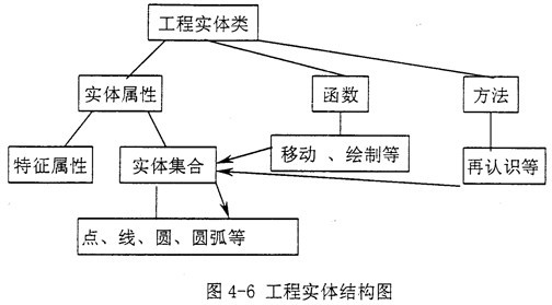 單個(gè)實(shí)體是通過(guò)點(diǎn)、直線、圓、圓弧等信息的集成而體現(xiàn)的,因此,在對(duì)實(shí)沐類進(jìn)行定義時(shí),可充分利用AutoCAD中的“實(shí)體集合”這個(gè)設(shè)計(jì)概念,把*.dwg圖形數(shù)據(jù)庫(kù)中的若干幾何信息集成起起來(lái),使之成為一個(gè)整體,再將此“實(shí)體集合”并入實(shí)體類的一個(gè)屬性(見(jiàn)圖4-6),當(dāng)實(shí)體在繪制、移動(dòng)等操作中被調(diào)用。