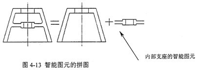 對(duì)于每一張工程產(chǎn)品圖紙,盡管圖與圖之間是千差萬(wàn)別的,但是一個(gè)產(chǎn)品圖的某個(gè)結(jié)構(gòu)總是可以從其他零產(chǎn)品圖中找到相同或相似的。為了有效地利用這些相同或相似的圖形單元,提出拼圖法繪圖:在裝配圖中,一個(gè)機(jī)器由若干個(gè)零件圖組裝而成;而在零件圖中,一個(gè)零件可看作是由若干圖形單元組成,如:一個(gè)零件外型圖形單元和若干個(gè)零件內(nèi)腔圖形單元(包括開(kāi)孔)組成。歸納來(lái)說(shuō),無(wú)論是裝配圖還是零件圖,都是由若干圖形單元拼成,而且不是簡(jiǎn)單的把圖形放到一起,還存在圖形單元的變化。例如:由零件圖拼成裝配圖中,需要有部分零件圖的打斷、消隱等工作;由零件外型圖形單元和內(nèi)腔圖形單元組成零件圖時(shí),更要涉及到圖形圖形之間的打斷、消隱、圓角化等等。這就決定了圖形單元應(yīng)具有部分智能化,命名為智能圖元,它與普通的圖形單元最大的不同在于:智能圖元可以在不同的周圍圖形環(huán)境下自動(dòng)調(diào)整其表現(xiàn)形式。這種以“智能圖元”為設(shè)計(jì)單元的設(shè)計(jì)方法稱為智能圖元法。