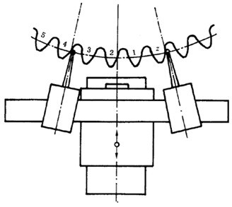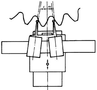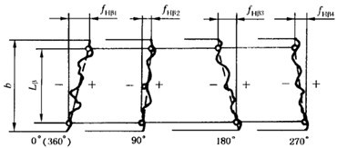 取在直徑上對置的同側(cè)位置的齒面,從其螺旋線圖上可以獲得適用的平均值,然而,如螺旋線傾斜偏差沿齒輪圓周變化時,則必須至少取三個均布齒面的跡線。否則其偏差不一定能被發(fā)現(xiàn)。