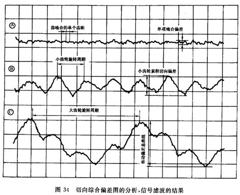 小齒輪所生成的長周期分量示于圖34B,切向綜合偏差短周期分量示于圖34A。