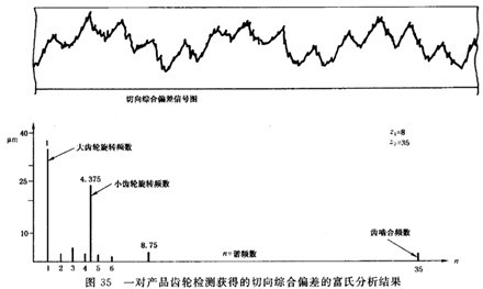 圖35中的線圖表示一幅完整的切向綜合偏差線圖,以及FFT分析所得的結(jié)果。